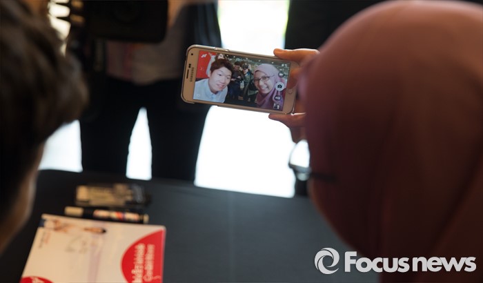 (서울=포커스뉴스) 17일 오후 서울 서대문구 탐앤탐스 신촌로터리점에서 열린 '에어아시아 앰배서더 박지성 사인회'에 참석한 박지성 前 국가대표 축구선수가 한 팬괴 기념 사진을 찍고 있다.
