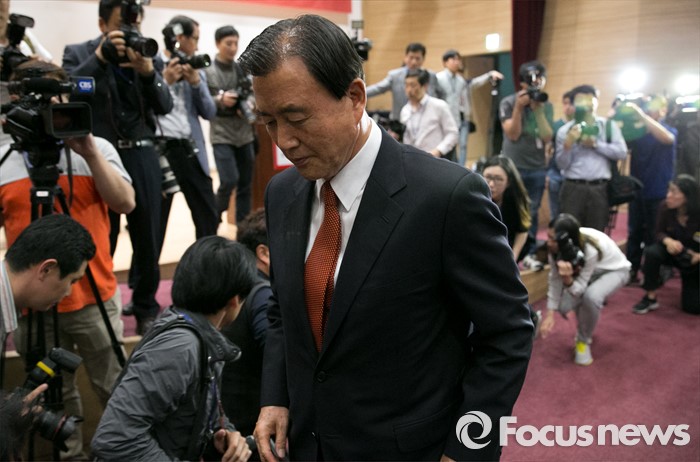 (서울=포커스뉴스) 17일 오후 서울 여의도 국회 의원회관에서 비대위 구성안 및 당헌 당규개정안 등 현안 처리를 위해 예정된 4차 새누리당 전국위원회에 참석한 홍문표 사무총장 대행이 굳은 표정으로 발언대로 향하고 있다. 이날 전국위원회의는 앞서 예정된 상임전국위원회를 개최해 당헌개정안 등을 심의할 예정이었지만, 친박계 의원들이 대거 불참해 참석자 미달로 회의가 열리지 못 했다.