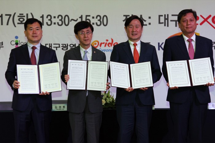(대구=포커스뉴스) 김경환 국토교통부 차관이 17일 대구 EXCO에서 국토교통부, 환경부, 대구광역시, 경상북도 간 대한민국 국제물주간 공동개최를 위한 업무협약을 체결하고 기념촬영 하고 있다. <사진제공=국토교통부>