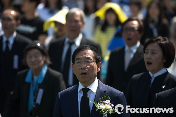 (서울=포커스뉴스) 18일 오전 서울 중구 서울시청 앞 광장에서 열린 5.18 민주화운동 기념식에 박원순 서울시장이 참석해 있다.