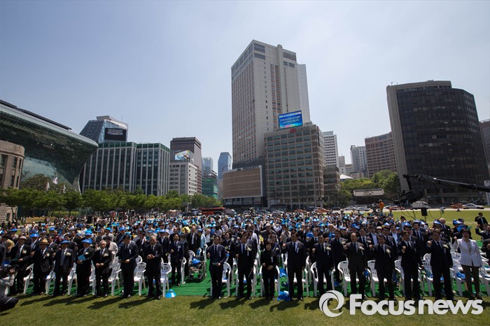 (서울=포커스뉴스) 5‧18민주화운동 발생지인 광주에서 제창되지 못한 '임을 위한 행진곡'이 서울광장에서는 제창됐다.