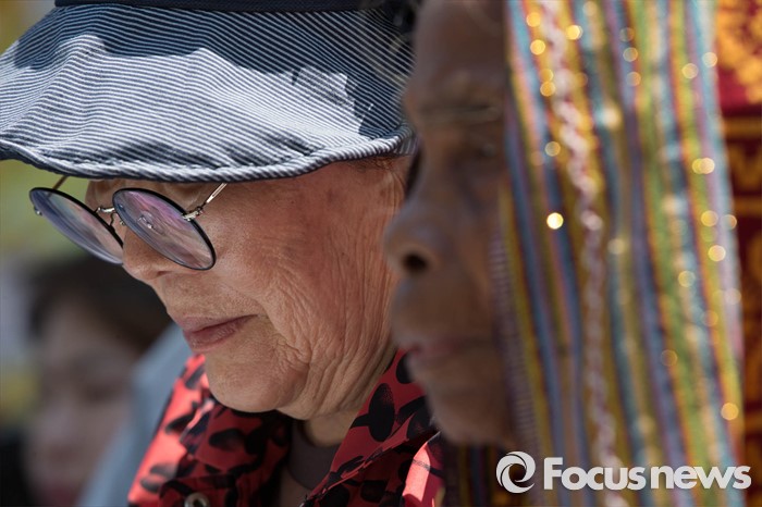 (서울=포커스뉴스) 18일 오후 서울 종로구 옛 일본대사관 앞에서 열린 '제1231차 일본군 위안부 문제해결을 위한 정기 수요시위'에 참석한 위안부 피해자 이용수(왼쪽) 할머니가 생각에 잠겨있다.