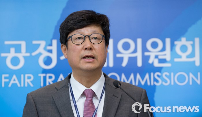 (세종=포커스뉴스) 김재신 공정거래위원회 기업거래정책국장이 18일 오전 세종시 정부세종청사 공정위 기자실에서 대형마트 3사의 대규모유통업법 위반으로 총 238억 원의 과징금을 부과했다고 밝히고 있다.