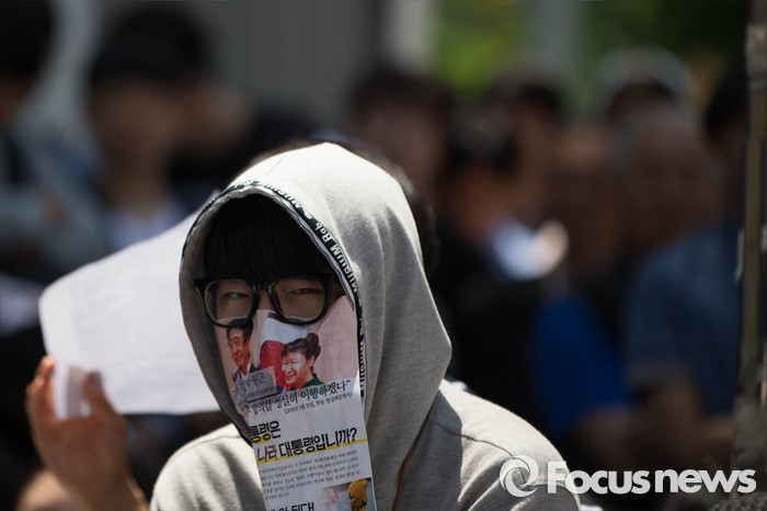 (서울=포커스뉴스) 18일 오후 서울 종로구 옛 일본대사관 앞에서 열린 '제1231차 일본군 위안부 문제해결을 위한 정기 수요시위'에 참석한 한 학생이 위안부 합의 안내문을 얼굴에 붙이고 있다.