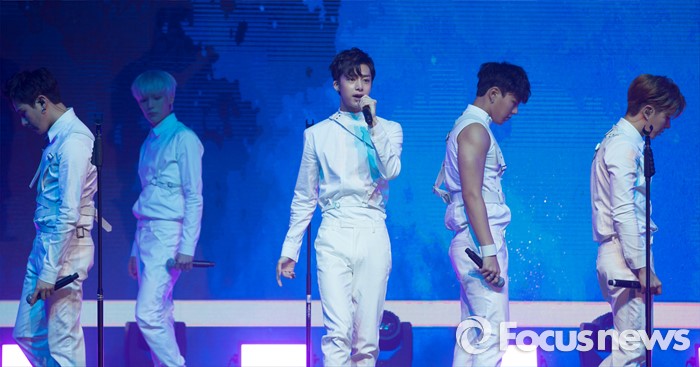 (서울=포커스뉴스) 18일 오후 서울 광진구 예스24 라이브홀에서 열린 아이돌그룹 몬스타엑스의 세번째 미니앨범 'THE CLEAN PART. 1 LOST' 발표 쇼케이스에 참석한 멤버들이 신곡 'Ex girl'의 무대를 선보이고 있다.