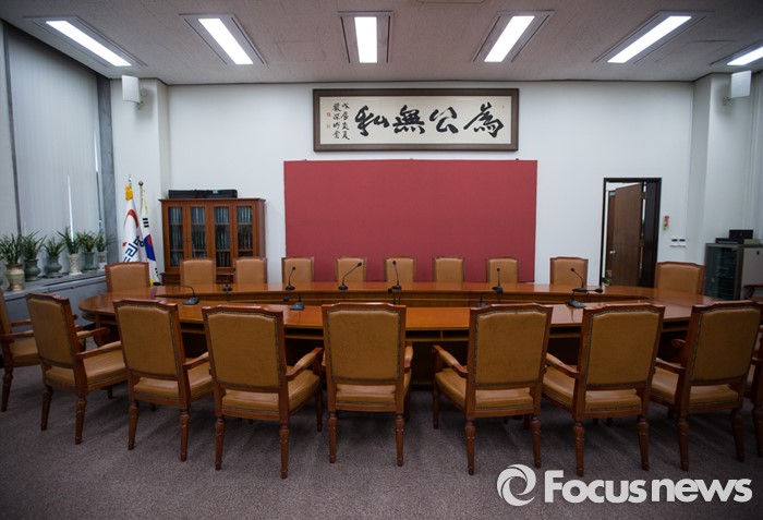 (서울=포커스뉴스) 18일 오후 서울 여의도 국회 새누리당 원내대표실이 텅 비어있다. 정진석 원내대표는 전날 오후 비상대책위·혁신위 추인이 무산되는 사태가 벌어진 후 18일 오전 광주 국립 5·18 민주묘지에서 열린 제36주년 5·18 민주화운동 기념식에 참석하고 지역구인 충남 공주로 자리를 옮겼다.