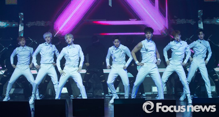 (서울=포커스뉴스) 18일 오후 서울 광진구 예스24 라이브홀에서 열린 아이돌그룹 몬스타엑스의 세번째 미니앨범 'THE CLEAN PART. 1 LOST' 발표 쇼케이스에 참석한 멤버들이 신곡 '걸어l'의 무대를 선보이고 있다.