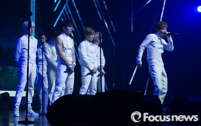 (서울=포커스뉴스) 18일 오후 서울 광진구 예스24 라이브홀에서 열린 아이돌그룹 몬스타엑스의 세번째 미니앨범 'THE CLEAN PART. 1 LOST' 발표 쇼케이스에 참석한 멤버들이 신곡 'Ex girl'의 무대를 선보이고 있다.