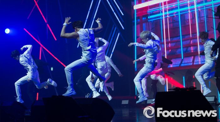 (서울=포커스뉴스) 18일 오후 서울 광진구 예스24 라이브홀에서 열린 아이돌그룹 몬스타X의 세번째 미니앨범 'THE CLEAN PART. 1 LOST' 발표 쇼케이스에 참석한 멤버들이 무대를 선보이고 있다.