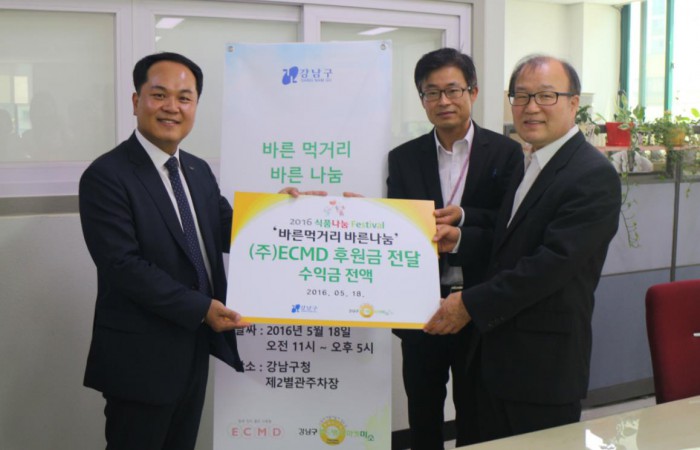 이씨엠디는 18일 강남구청에서 '강남구 푸드뱅크·마켓'과 함께 지역사회 취약계층 지원을 위한 식품 나눔 페스티벌 '바른먹거리 바른나눔' 행사를 진행했다.