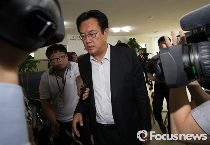 (공주=포커스뉴스) 정진석 새누리당 원내대표가 18일 오후 충남 공주 지난 선거 당시 사용했던 선거사무소에서 측근들과 논의중 잠시 사무실을 나서며 취재진의 질문을 받고 있다.