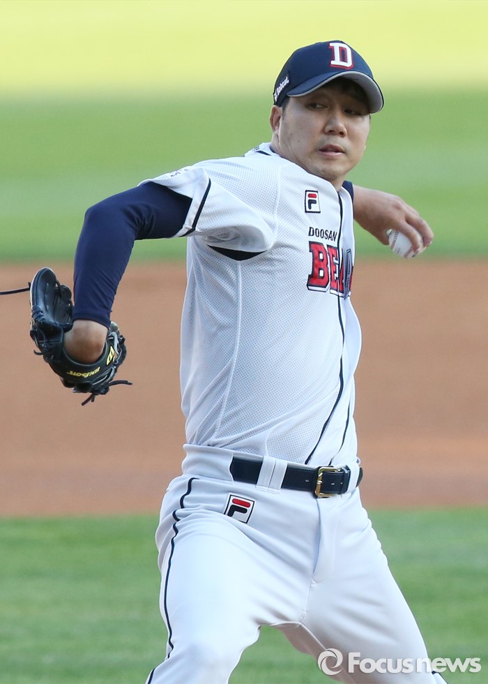 (서울=포커스뉴스) 18일 서울 잠실구장에서 열린 2016프로야구 KIA-두산 경기에서 1회초 두산 선발투수 장원준이 투구하고 있다.