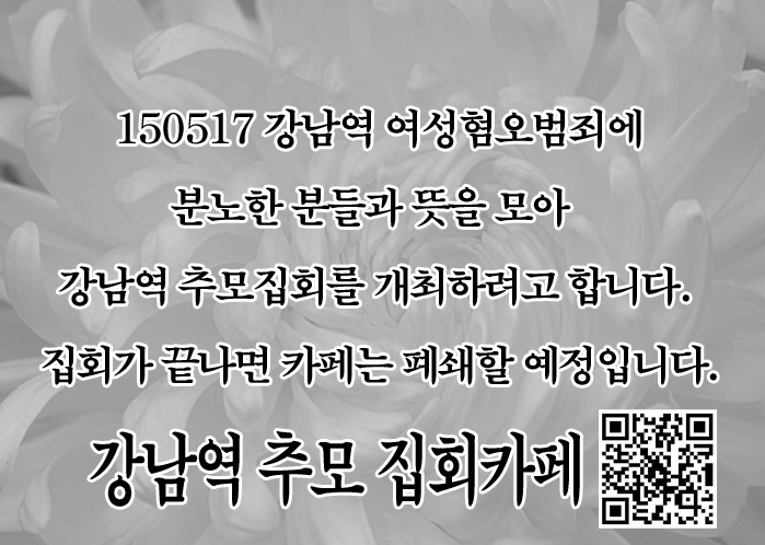18일 온라인 포털 사이트 '다음'에는 '강남역 추모 집회'라는 카페가 개설돼 누리꾼들 사이에서 추모집회의 일시·장소·형식 등이 논의되고 있다.