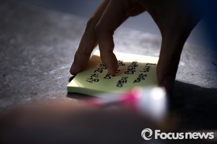 (서울=포커스뉴스) 19일 오전 서울 서초구 강남역 10번 출구에서 출근길 시민들이 '묻지마 살인' 피해자를 추모하고 있다.