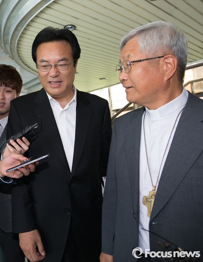 | △ 대전교구 유흥식 주교 면담 마친 정진석 원내대표 |