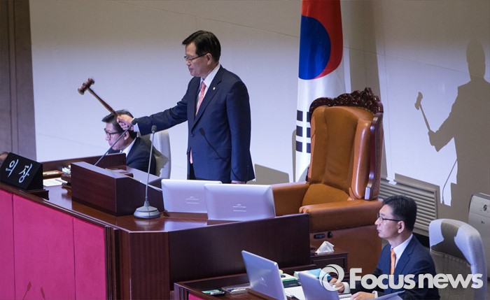 (서울=포커스뉴스) 19일 오전 서울 여의도 국회에서 열린 342회 국회(임시회) 1차 본회의에 참석한 정의화 국회의장이 안건을 의결하고 있다.