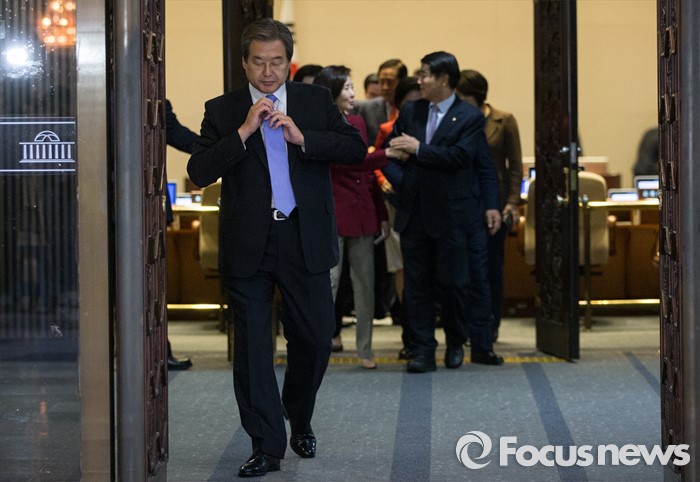(서울=포커스뉴스) 19일 오후 서울 여의도 국회에서 열린 342회 국회(임시회) 1차 본회의에 참석한 김무성 새누리당 전 대표가 본회의가 정회된 후 회의장을 빠져나오고 있다.