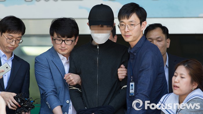 (서울=포커스뉴스) 지난 17일 서울 강남역 인근 노래방 화장실에서 직장인 A씨(23·여)를 흉기로 살해한 혐의를 받고 있는 김모(34)씨가 구속전피의자심문(영장실질심사)을 받기 위해 19일 오후 서울 서초경찰서를 나서고 있다.