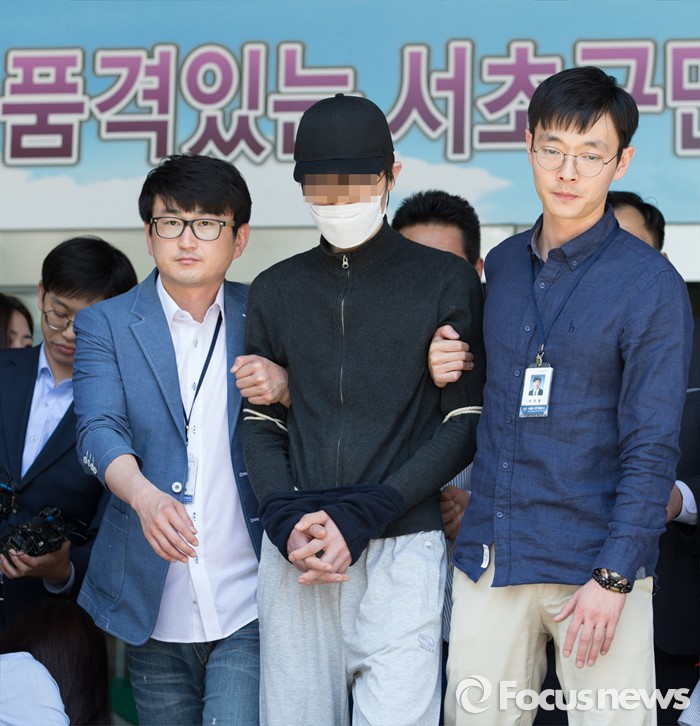 (서울=포커스뉴스) 지난 17일 서울 강남역 인근 노래방 화장실에서 직장인 A씨(23·여)를 흉기로 살해한 혐의를 받고 있는 김모(34)씨가 구속전피의자심문(영장실질심사)을 받기 위해 19일 오후 서울 서초경찰서를 나서고 있다.