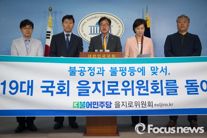 (서울=포커스뉴스) 19일 오후 서울 여의도 국회 정론관에서 더불어민주당 19대 을지로위원회 활동 마무리 기자회견을 하고 있다.