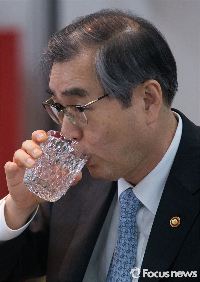 (서울=포커스뉴스) 정재찬 공정거래위원회 위원장이 19일 오후 서울 강남구 위메프 본사에서 열린 '전자상거래 업계대표 간담회'에 참석해 물을 마시고 있다.