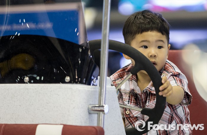(고양=포커스뉴스) 19일 오후 경기 고양시 킨텍스 제1전시관에서 열린 2016 경기국제보트쇼를 찾은 어린이가 보트 위에서 놀고 있다.