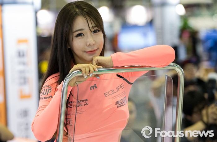 (고양=포커스뉴스) 19일 오후 경기 고양시 킨텍스 제1전시관에서 열린 2016 경기국제보트쇼에 참가한 모델이 보트 위에서 포즈를 취하고 있다.