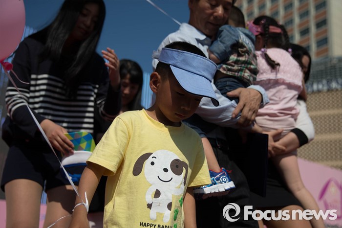 (서울=포커스뉴스) 19일 오후 서울시청광장에서 열린 '제1회 건강가정 다출산 범국민대회'에 참석한 김정수, 함은주 가족의 아이들이 다출산 건강가정 대상을 시상하고 단상을 내려오고 있다.