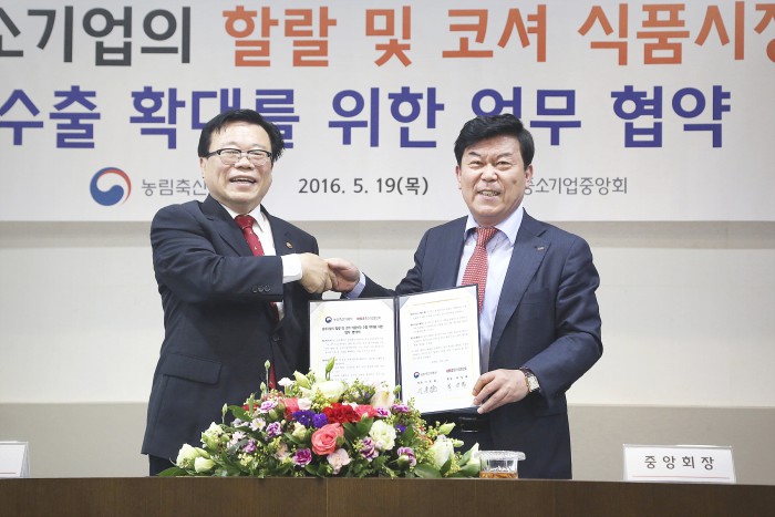중기중앙회와 농식품부는 19일 서울 여의도 중기중앙회에서 업무협약식을 개최, 국내 농식품 중소기업이 할랄·코셔시장에 진출 할 수 있도록 협력키로 했다.