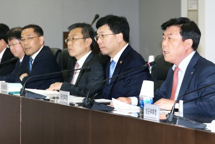 박성택 중기중앙회장은 "조달청은 중앙 조달기관이라는 단순 기능적 역할을 넘어, 조달정책의 전환과 변화를 통해 우리경제에 던지는 메시지가 매우 큰 기관"이라며 "공정하고 투명한 조달시장을 조성하고자 하는 조달청의 국정과제는 중앙회가 추구하는 바른 시장경제 확립을 달성한다는 점에서 일맥상통하므로, 앞으로도 현장과 조달청의 소통이 더욱 활성화 될 수 있기를 기대한다"고 밝혔다.'정양호 조달청장과 중소기업인 간담회'에서 박성택 중기중앙회장(맨 오른쪽)이 인사말을 하고 있다.<사진제공=중기중앙회>