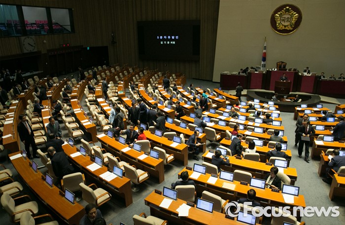 (서울=포커스뉴스) 19일 오후 서울 여의도 국회에서 열린 342회 국회(임시회) 1차 본회의에 참석한 의원들이 안건 의결 후 진행된 김기준 더불어민주당 의원의 5분 자유발언 중 퇴장하고 있다.