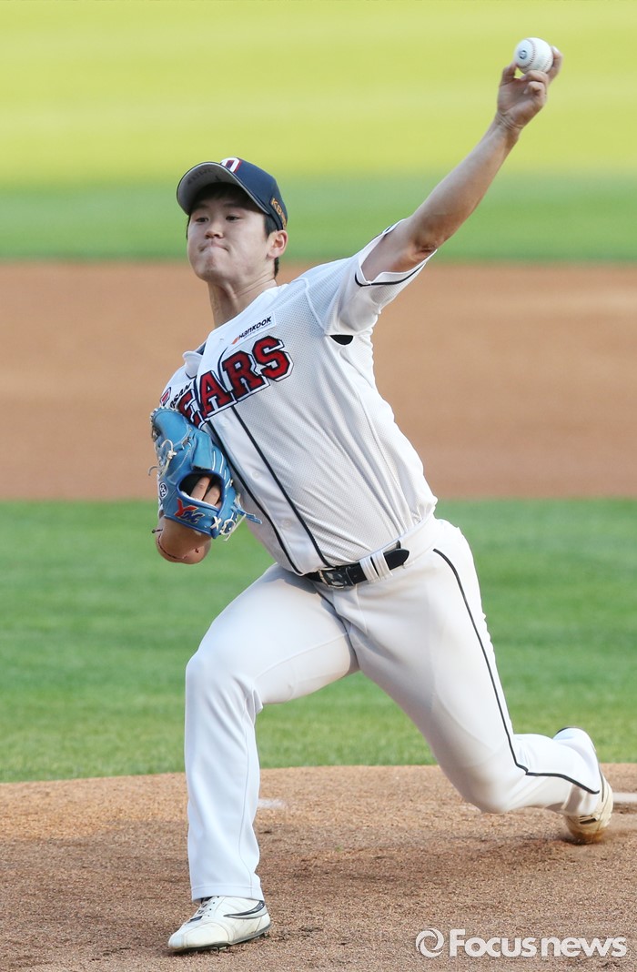 (서울=포커스뉴스) 19일 서울 잠실구장에서 열린 2016프로야구 KIA-두산 경기에서 1회초 두산 선발투수 진야곱이 투구하고 있다.