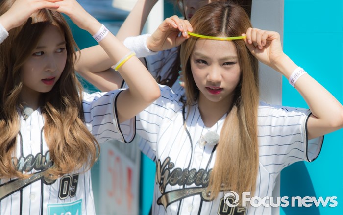 (서울=포커스뉴스) 19일 오후 서울 종로구 성균관대 캠퍼스에서 걸그룹 우주소녀의 멤버 여름이 'Y24 스쿨어택' 행사에 참여해 머리에 빨대를 두르고 있다.