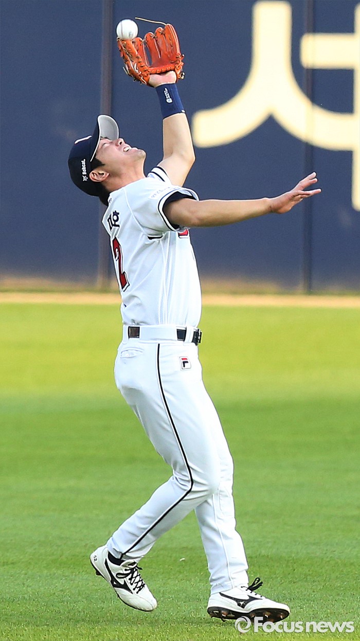 (서울=포커스뉴스) 19일 서울 잠실구장에서 열린 2016프로야구 KIA-두산 경기 1회초 1사 1,3루에서 두산 유격수 김재호가 KIA 이범호의 플라이볼 타구를 잡고 있다.