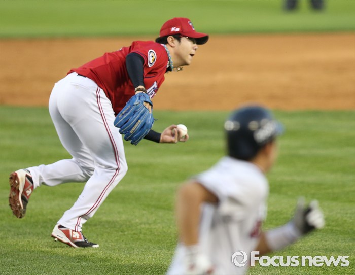 (서울=포커스뉴스) 19일 서울 잠실구장에서 열린 2016프로야구 KIA-두산 경기 2회말 2사후 KIA 투수 양현종이 두산 허경민의 투수앞 땅볼 타구를 잡아 1루로 송구하고 있다.