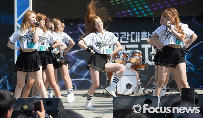 (서울=포커스뉴스) 19일 오후 서울 종로구 성균관대 캠퍼스에서 걸그룹 우주소녀의 멤버들이 'Y24 스쿨어택' 행사에 참여하고 있다.