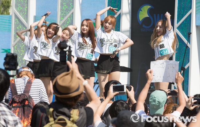 (서울=포커스뉴스) 19일 오후 서울 종로구 성균관대 캠퍼스에서 걸그룹 우주소녀의 멤버들이 'Y24 스쿨어택' 행사에 참여해 무대를 선보이고 있다.