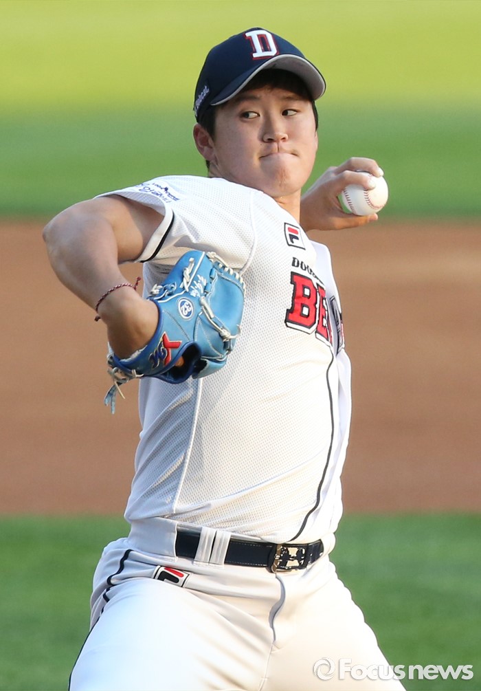 (서울=포커스뉴스) 19일 서울 잠실구장에서 열린 2016프로야구 KIA-두산 경기에서 1회초 두산 선발투수 진야곱이 투구하고 있다.