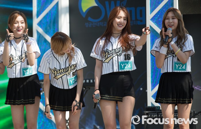 (서울=포커스뉴스) 19일 오후 서울 종로구 성균관대 캠퍼스에서 걸그룹 우주소녀의 멤버들이 'Y24 스쿨어택' 행사에 참여해 인사를 하고 있다.