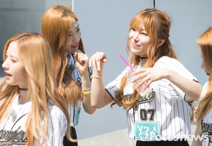 (서울=포커스뉴스) 19일 오후 서울 종로구 성균관대 캠퍼스에서 걸그룹 우주소녀의 멤버 은서(왼쪽두번째)와 다원이 'Y24 스쿨어택' 행사에 참여하고 있다.