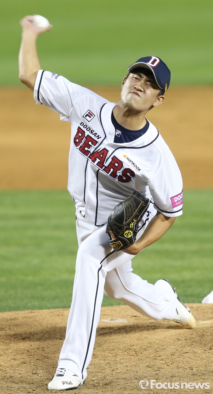 (서울=포커스뉴스) 19일 서울 잠실구장에서 열린 2016프로야구 KIA-두산 경기에서 두산 투수 홍영현이 4회 등판해 투구하고 있다.