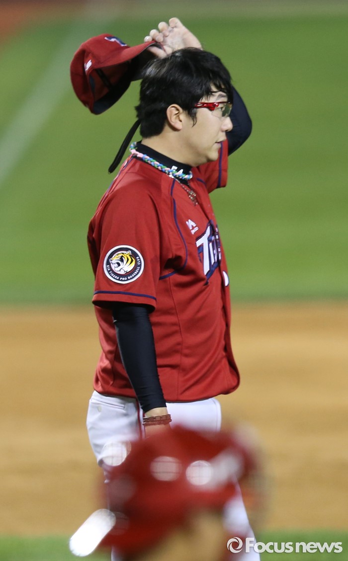 (서울=포커스뉴스) 19일 서울 잠실구장에서 열린 2016프로야구 KIA-두산 경기 4회말 1사 2루에서 KIA 투수 양현종이 두산 김재환의 타구를 잡아 1루로 악송구해 실점하고 난감해 하고 있다.