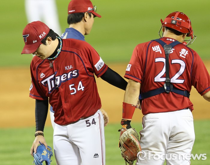 (서울=포커스뉴스) 19일 서울 잠실구장에서 열린 2016프로야구 KIA-두산 경기에서 5회말 두산 에반스에게 2점 홈런을 맞은 KIA 투수 양현종이 교체돼 마운드를 내려가고 있다.