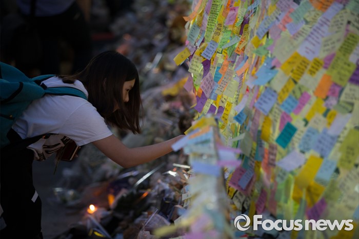 (서울=포커스뉴스) 19일 오후 서울 서초구 강남역 10번출구에서 시민들이 '강남 묻지마 살인' 피해자를 추모하고 있다.