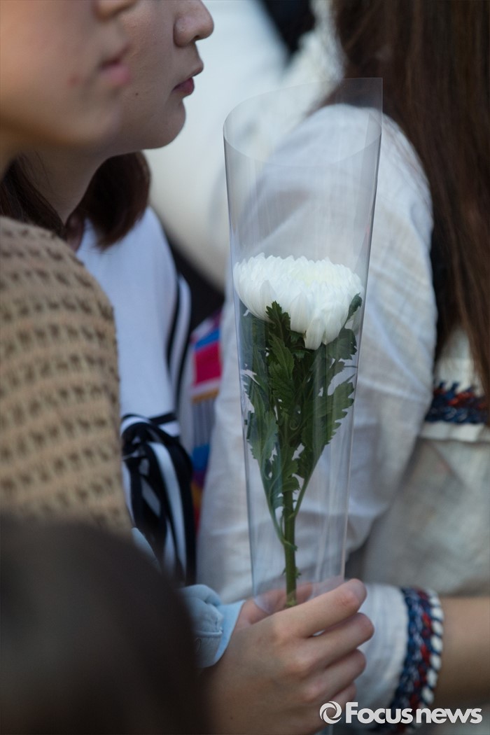 피해자를 추모하는 국화꽃