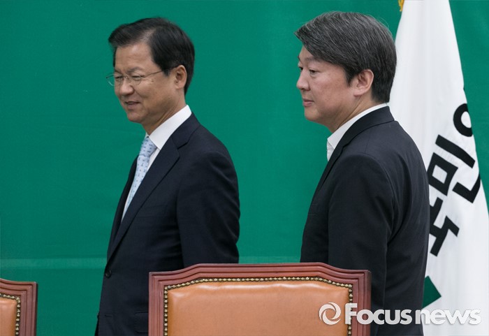 (서울=포커스뉴스) 안철수(오른쪽) 국민의당 상임공동대표, 천정배 공동대표가 20일 오전 서울 여의도 국회에서 열린 최고위원회의에 참석하고 있다.