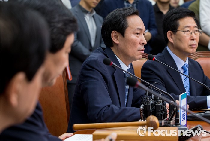 (서울=포커스뉴스) 20일 오전 서울 여의도 국회에서 열린 더불어민주당 비상대책위원회의에 참석한 우상호 원내대표가 모두발언 하고 있다.