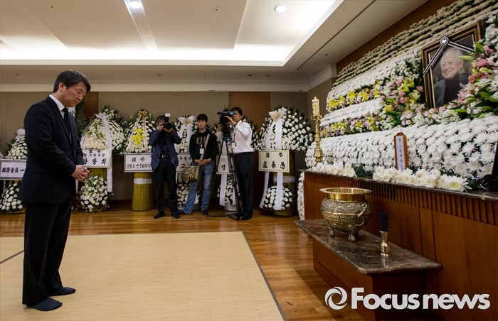 (서울=포커스뉴스) 20일 오전 서울 송파구 아산병원 장례식장에 마련된 故 김재순 전 국회의장의 빈소를 찾은 안철수 국민의당 상임공동대표가 헌화 후 묵념하고 있다.
