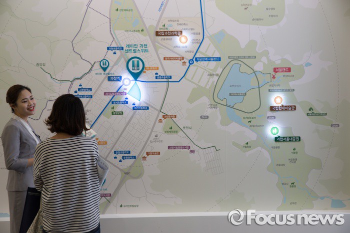 (서울=포커스뉴스) 20일 오전 서울 송파구 래미안 하우스에 개관한 래미안 과천 센트럴 스위트 견본주택을 찾은 한 시민이 주변 편의시설을 표시한 지도를 보고 있다.