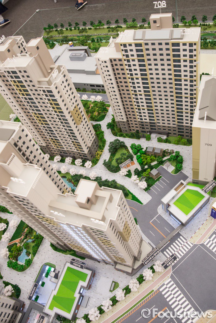 (서울=포커스뉴스) 20일 오전 서울 송파구 래미안 하우스에 개관한 래미안 과천 센트럴 스위트 견본주택에 전시된 모형도.